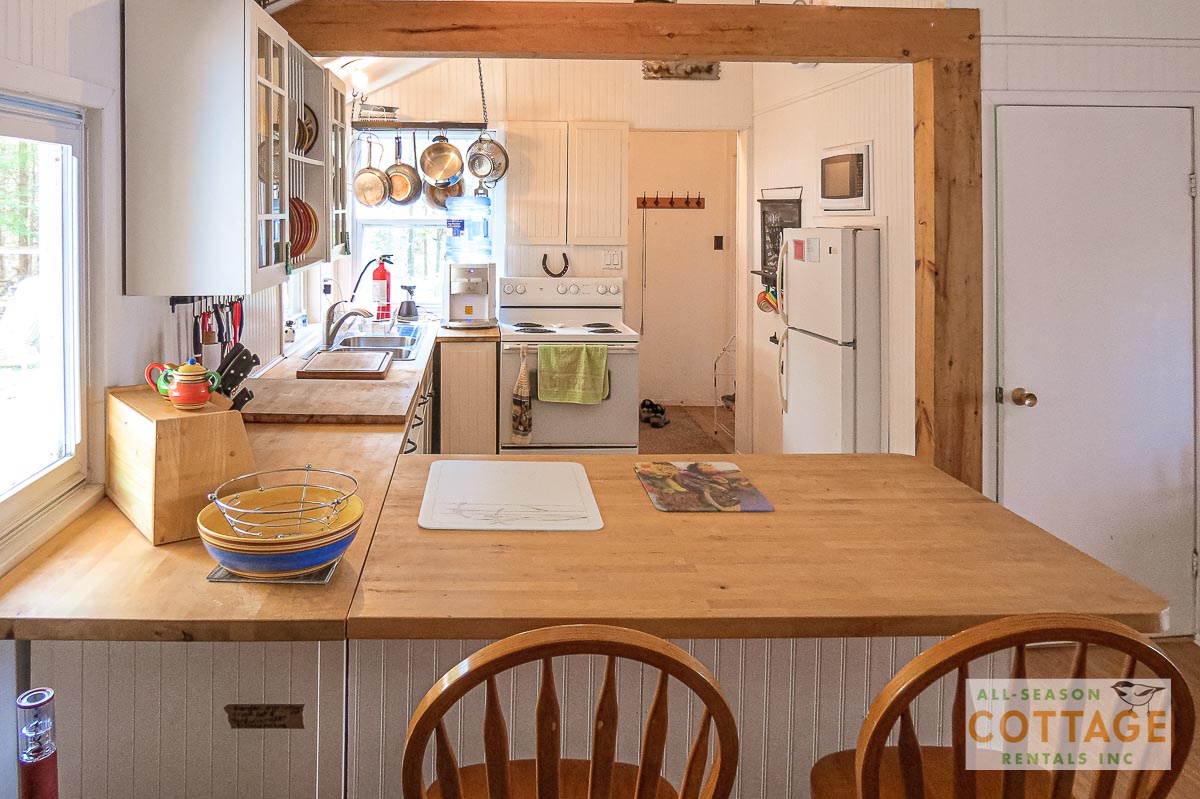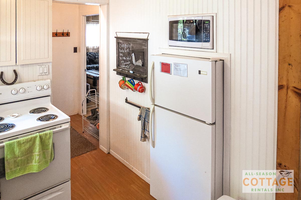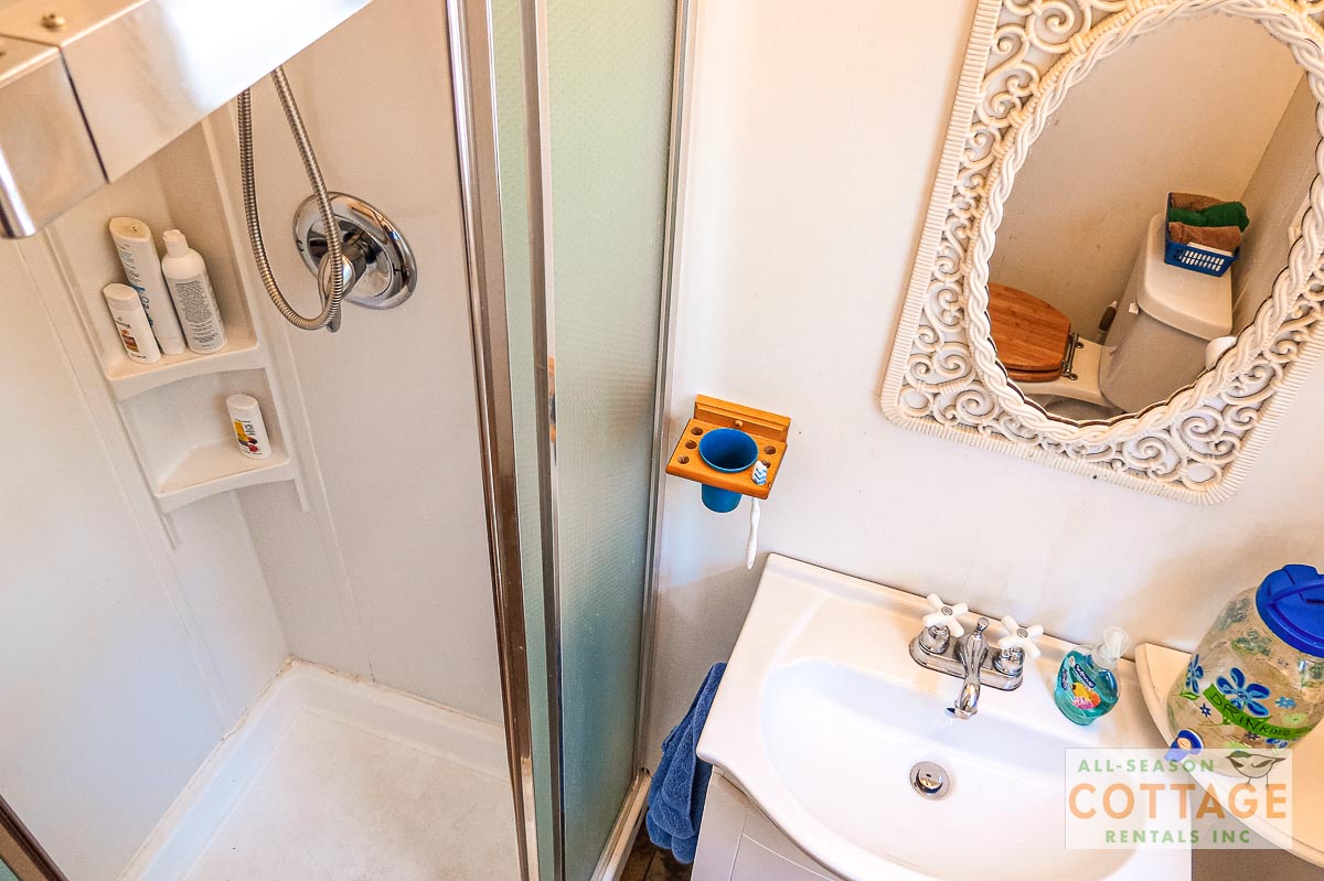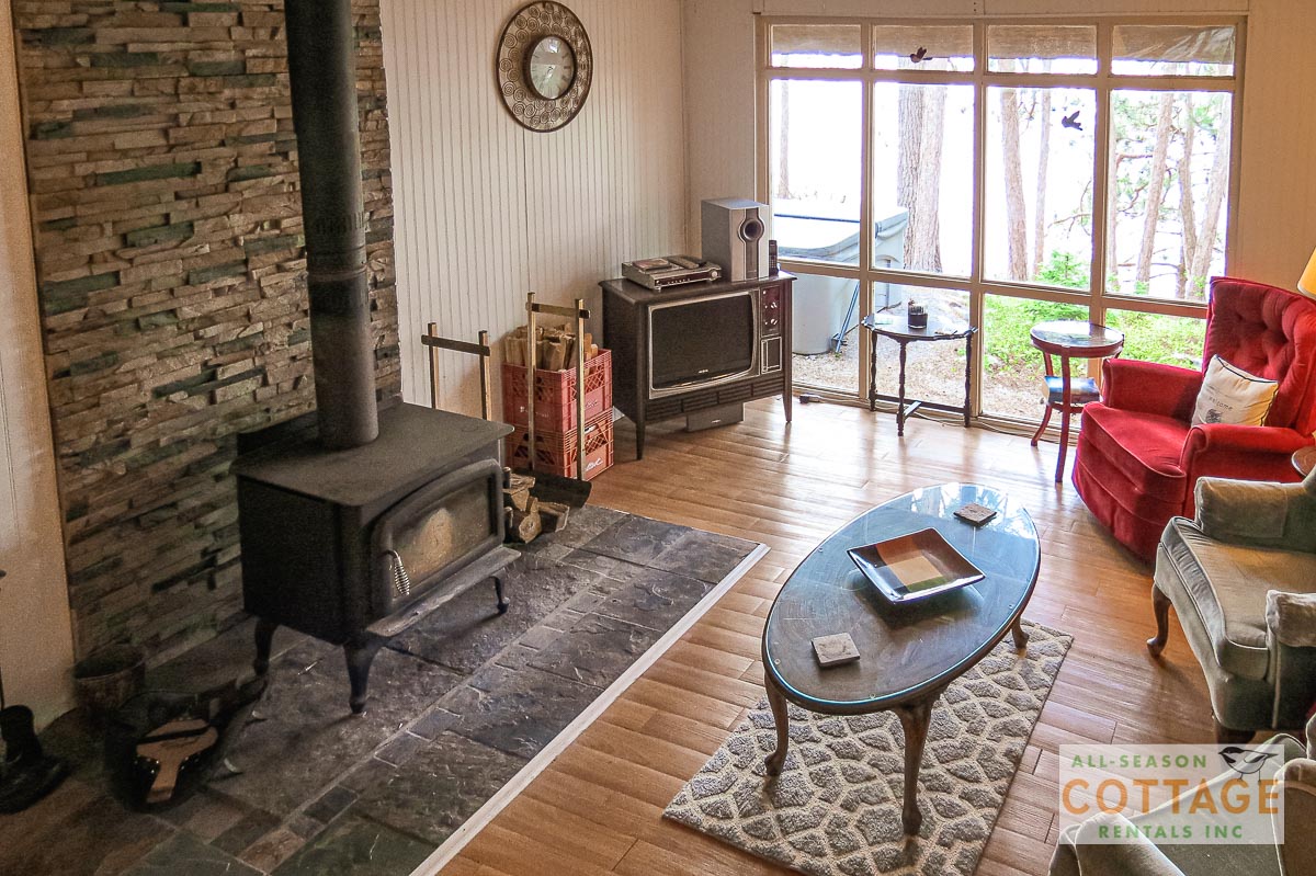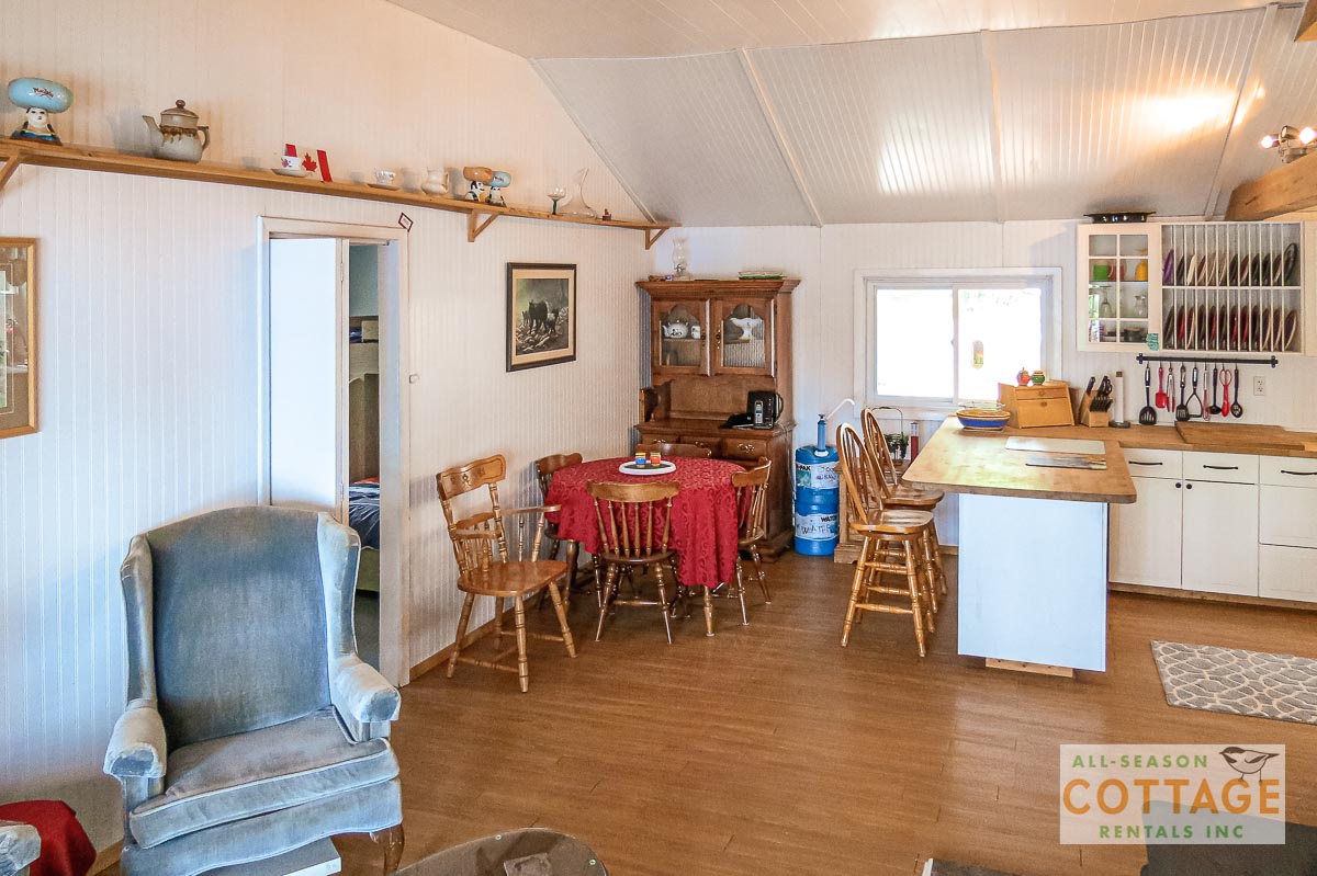 Lovely small cottage with everything needed for a relaxing vacation. Plenty of places to sit, both in and out of the sun, to chat or read or enjoy the view, including the hot tub which was great for the chilly mornings we had. We also canoed around the top of the lake to view everyone else’s cottages. Inside, the two sitting areas gave us lots of space to spread out and I enjoyed doing my online Pilates using the big screen tv.