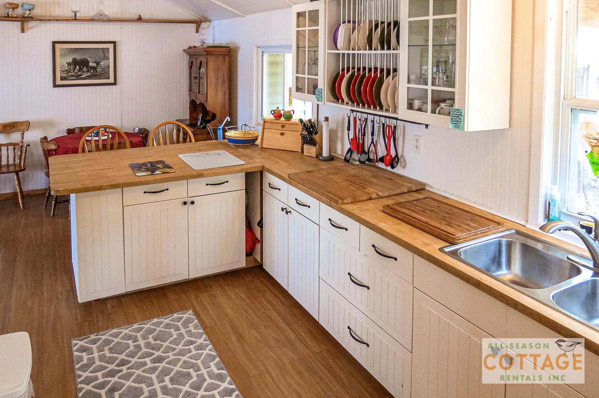 We absolutely loved our time at the Country Pines. We didn't think we would use the hot tub but we did every day! The kayak, canoe and paddleboat were well used. It was very nice of the owners to let us use the beach next door. The kitchen layout is perfect! The only criticism we would have is that the website listed a Queen, a Double and two Singles for beds. When we arrived we found two doubles, which was two small for my wife and I. If there was a bigger bed we would return every year.