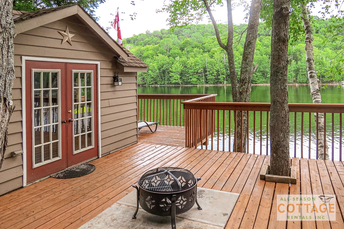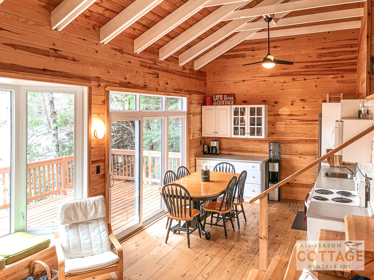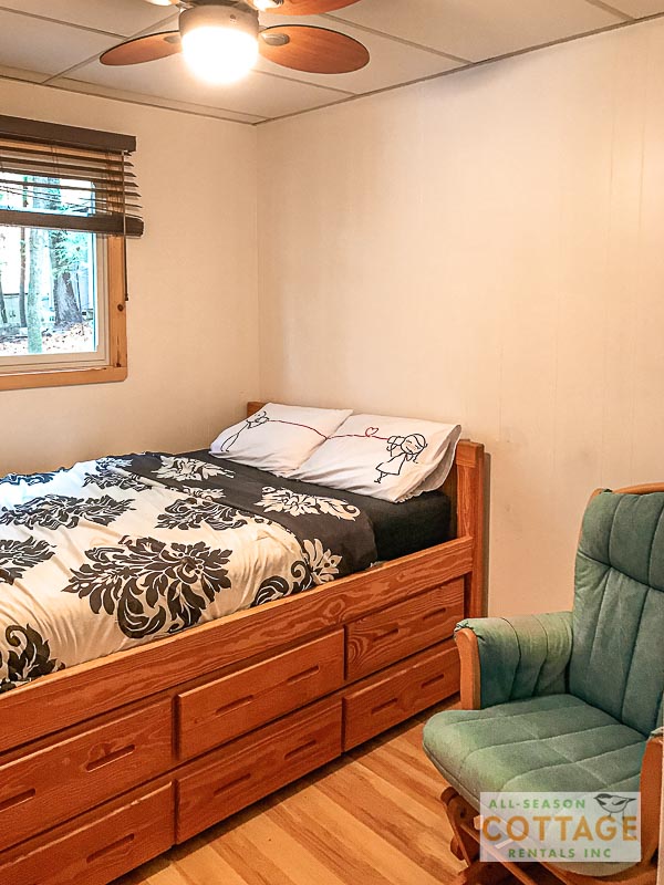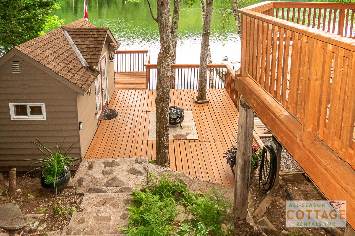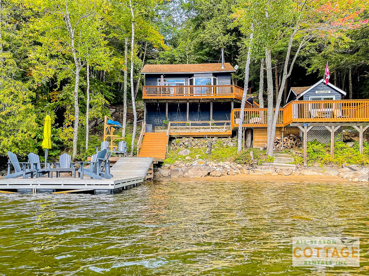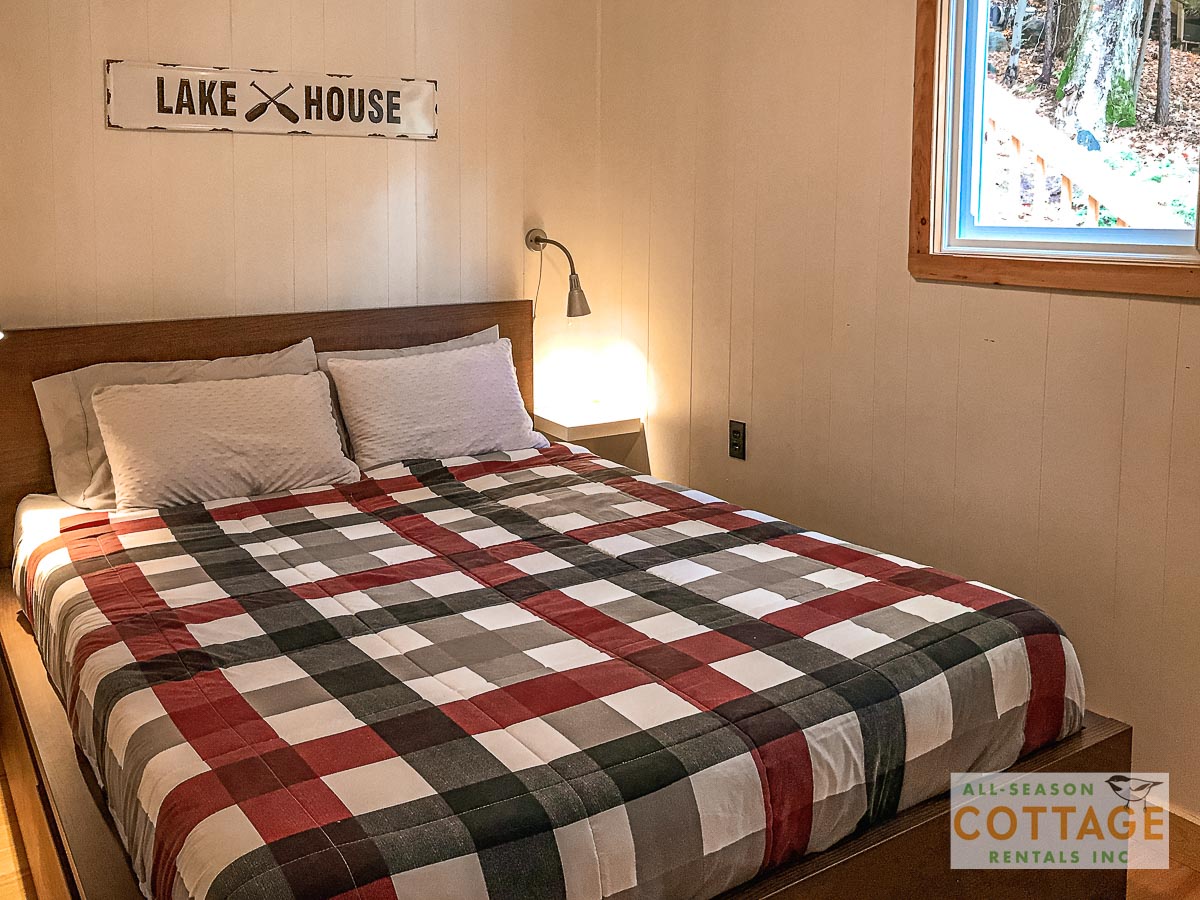 Very well thought out 3 bedroom, 1 washroom family cottage on Drag Lake. The cottage features open concept kitchen and living room area with wood stove and wonderful view of the lake. The interior has recently been renovated and was very well thought out. All bedrooms are up a small flight of stairs from living room, running along back side of the cottage. Beautiful deck with table and chair set is perfect for evening meals. There is a child gate on the deck for added safety. Down a fight of stairs from the cottage, you will reach lower deck with fire table, loungers and small Bunkie. The Bunkie has a Double futon, TV and DVD player. A fold up table allows the Bunkie to double as separate office space or writers cabin. Down at the water enjoy the clear/clean waters of Drag Lake from the dock or small sand beach along the shoreline (beach appears mid August). There are numerous non-motorized watercraft available for you to explore the lake. You would have no trouble docking about at this cottage which is conveniently located under 10 minutes from Haliburton.