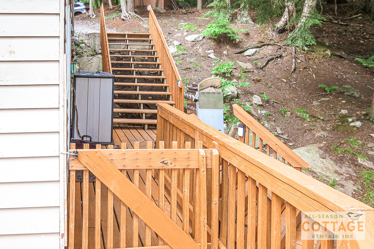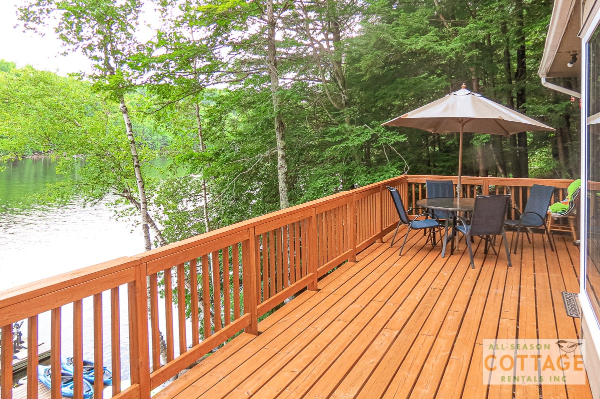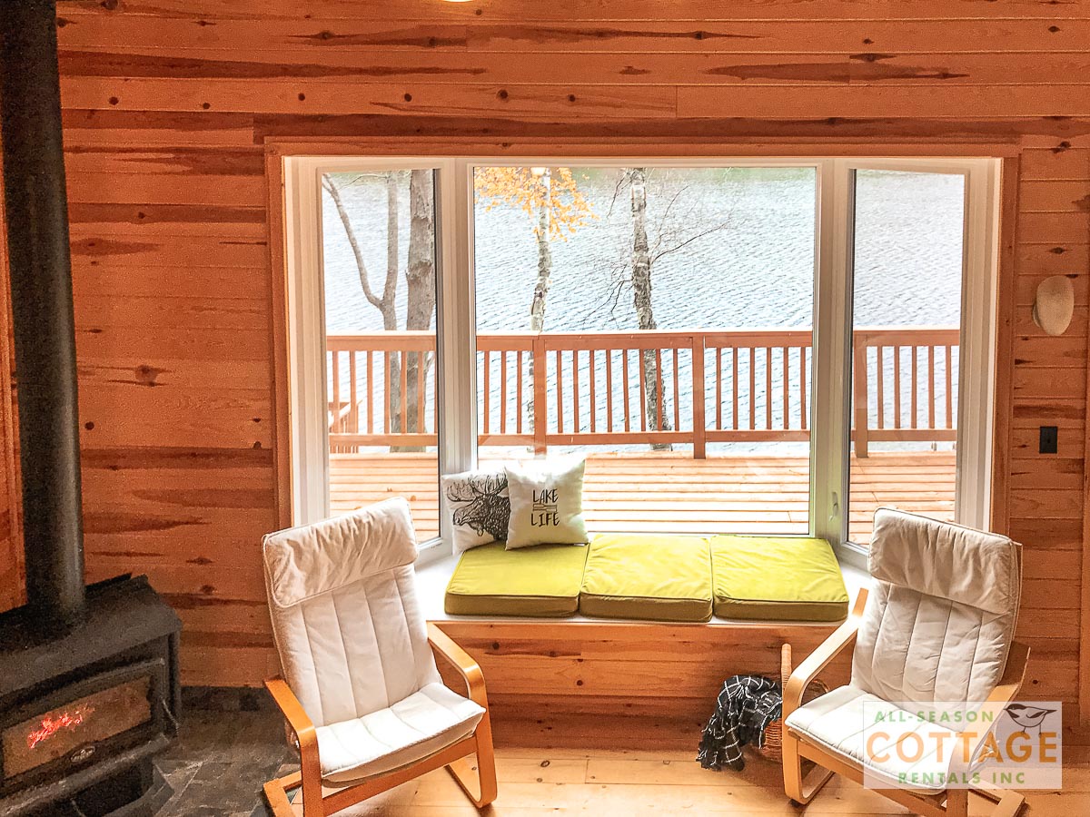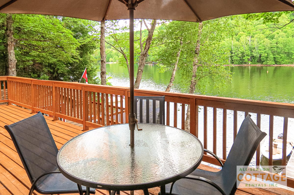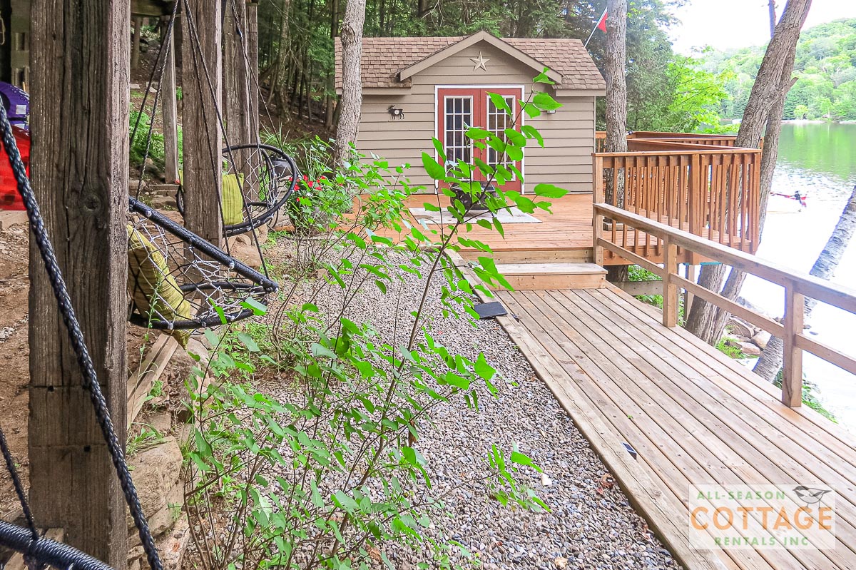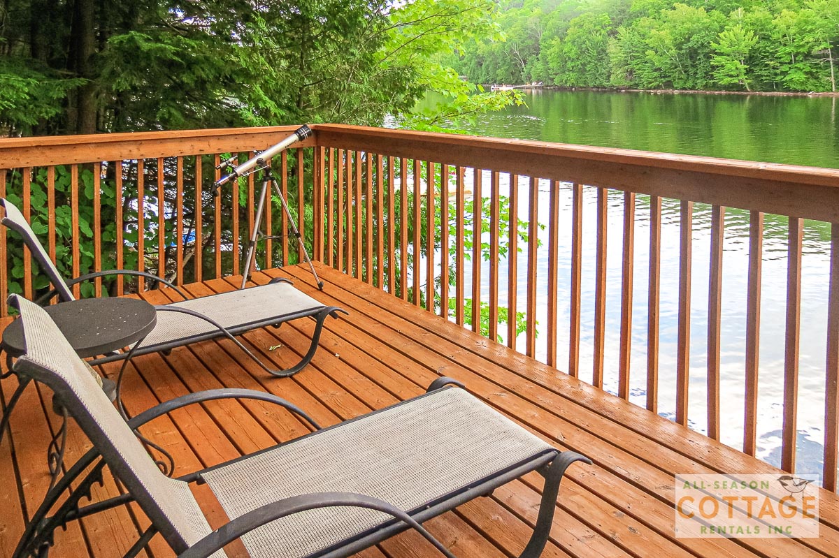 Very well thought out 3 bedroom, 1 washroom family cottage on Drag Lake. The cottage features open concept kitchen and living room area with wood stove and wonderful view of the lake. The interior has recently been renovated and was very well thought out. All bedrooms are up a small flight of stairs from living room, running along back side of the cottage. Beautiful deck with table and chair set is perfect for evening meals. There is a child gate on the deck for added safety. Down a fight of stairs from the cottage, you will reach lower deck with fire table, loungers and small Bunkie. The Bunkie has a Double futon, TV and DVD player. A fold up table allows the Bunkie to double as separate office space or writers cabin. Down at the water enjoy the clear/clean waters of Drag Lake from the dock or small sand beach along the shoreline (beach appears mid August). There are numerous non-motorized watercraft available for you to explore the lake. You would have no trouble docking about at this cottage which is conveniently located under 10 minutes from Haliburton.