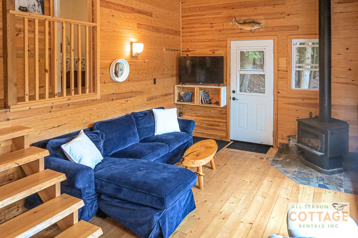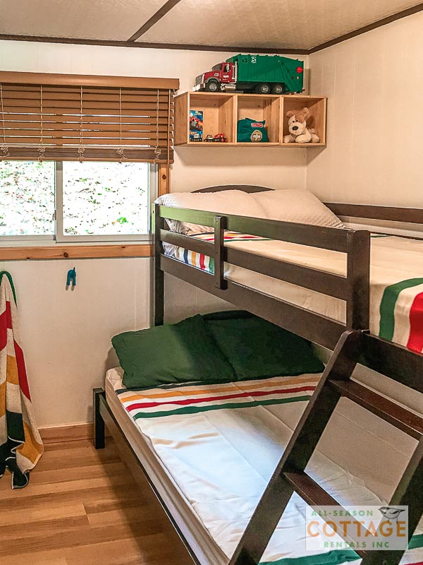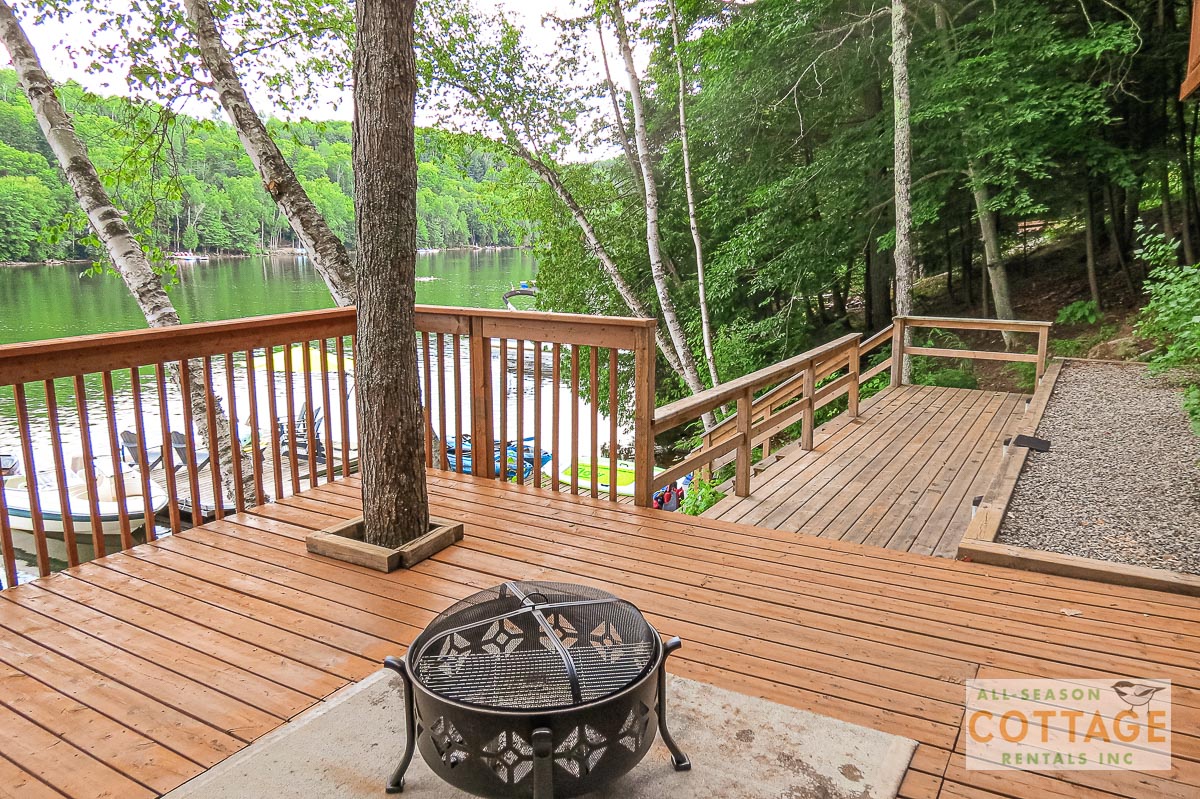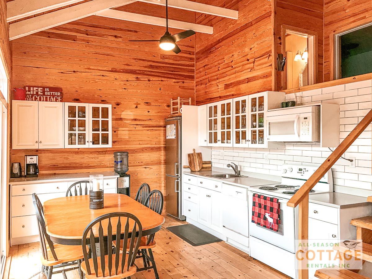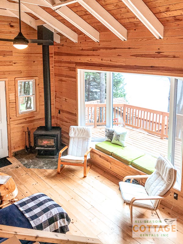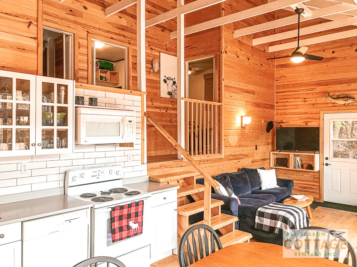 Very well thought out 3 bedroom, 1 washroom family cottage on Drag Lake. The cottage features open concept kitchen and living room area with wood stove and wonderful view of the lake. The interior has recently been renovated and was very well thought out. All bedrooms are up a small flight of stairs from living room, running along back side of the cottage. Beautiful deck with table and chair set is perfect for evening meals. There is a child gate on the deck for added safety. Down a fight of stairs from the cottage, you will reach lower deck with fire table, loungers and small Bunkie. The Bunkie has a Double futon, TV and DVD player. A fold up table allows the Bunkie to double as separate office space or writers cabin. Down at the water enjoy the clear/clean waters of Drag Lake from the dock or small sand beach along the shoreline (beach appears mid August). There are numerous non-motorized watercraft available for you to explore the lake. You would have no trouble docking about at this cottage which is conveniently located under 10 minutes from Haliburton.