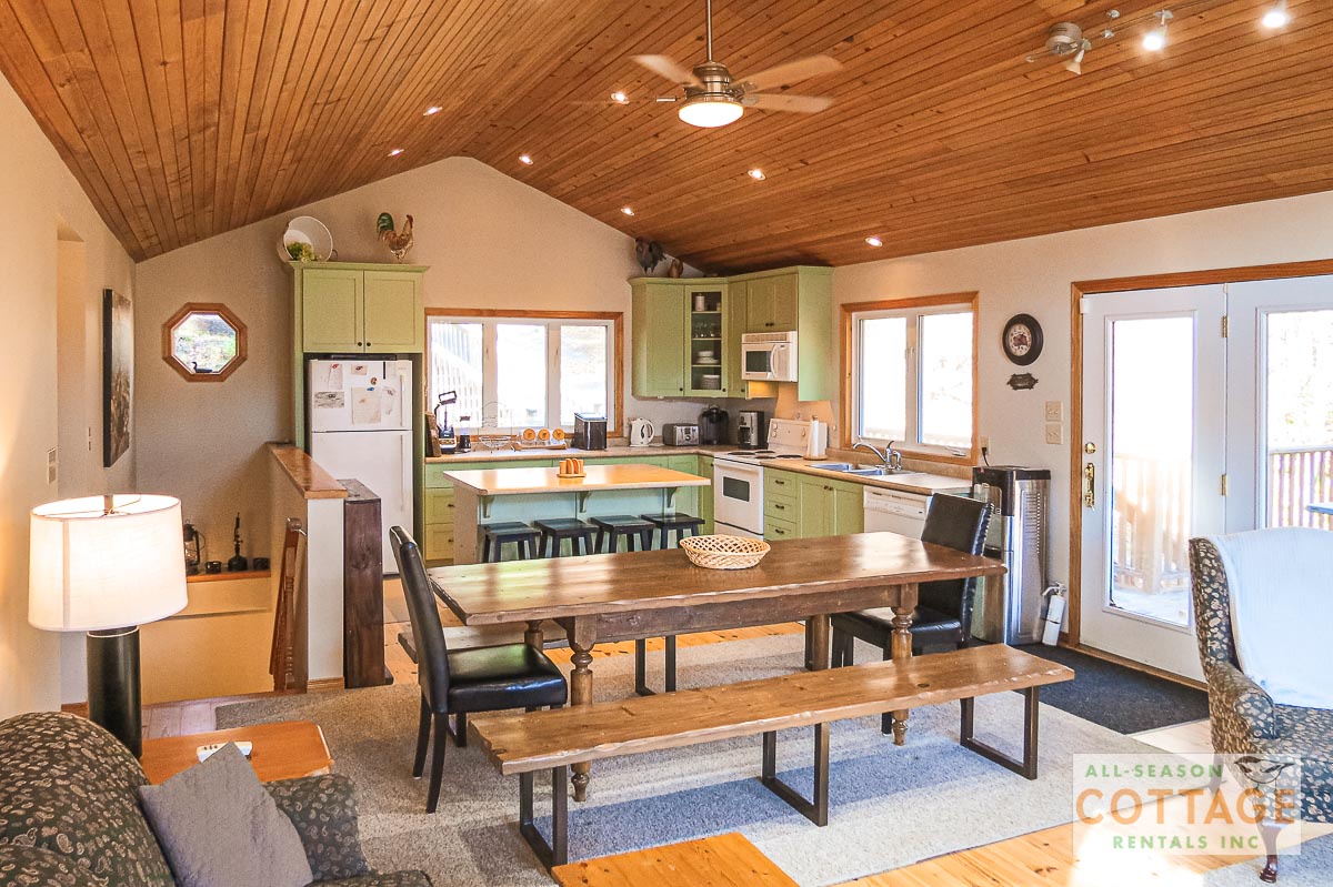 The things we liked the most were ; the large kitchen table so we could all eat together, the shallow entry swimming area and amenities for the little kids and the spaciousness of the cottage and of course because it's in the Canadian north .