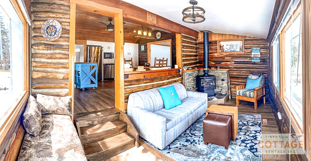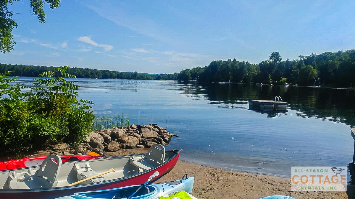 Welcome to Sunny Maple - your charming retreat nestled amidst the beauty of Haliburton's serene landscapes. This recently renovated log cabin exudes rustic elegance, offering a cozy haven for your short-term getaway. Step inside to discover a cute and clean interior adorned with modern comforts. The two bedrooms provide ample space for a small family or a couple of friends seeking a peaceful escape. With two pristine washrooms, convenience is never compromised. Situated on a flat lot, this idyllic cabin boasts a sprawling lawn leading to a pristine sand beach. Spend leisurely afternoons basking in the sun or embark on aquatic adventures on the canoe, or one of three kayaks at your disposal. One of the standout features of Sunny Maple is its enviable location on a point, ensuring full sun exposure throughout the day. Wake up to the gentle glow of dawn and savor every moment as sunlight bathes the surroundings in warmth. Beyond the confines of your cozy cabin, an array of local attractions awaits exploration. Whether you're hitting the slopes at Sir Sam's Ski Area, traversing scenic snowmobile trails, or immersing yourself in the charm of Haliburton and Minden, adventure is always within reach. Stay connected with unlimited wireless internet access, allowing you to share your memorable moments with loved ones or catch up on work amidst the tranquility of nature. Escape the hustle and bustle of everyday life and experience the magic of Sunny Maple - where relaxation and adventure converge in perfect harmony. Book your stay today and embark on a journey to rejuvenation in the heart of Haliburton's wilderness.