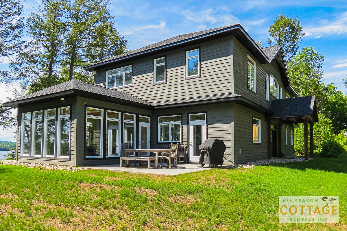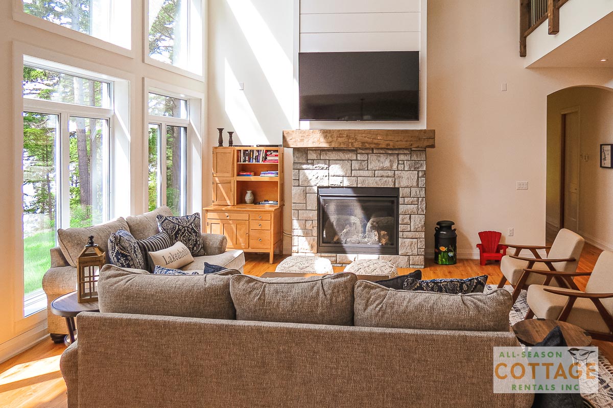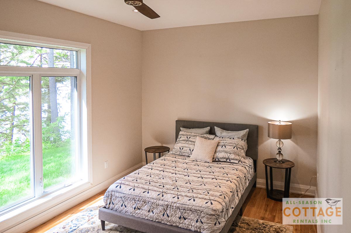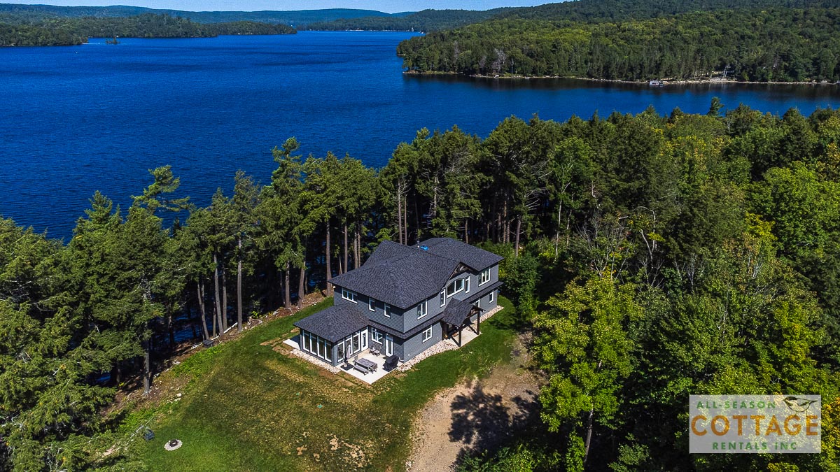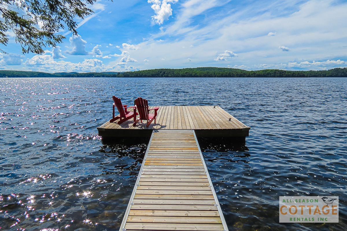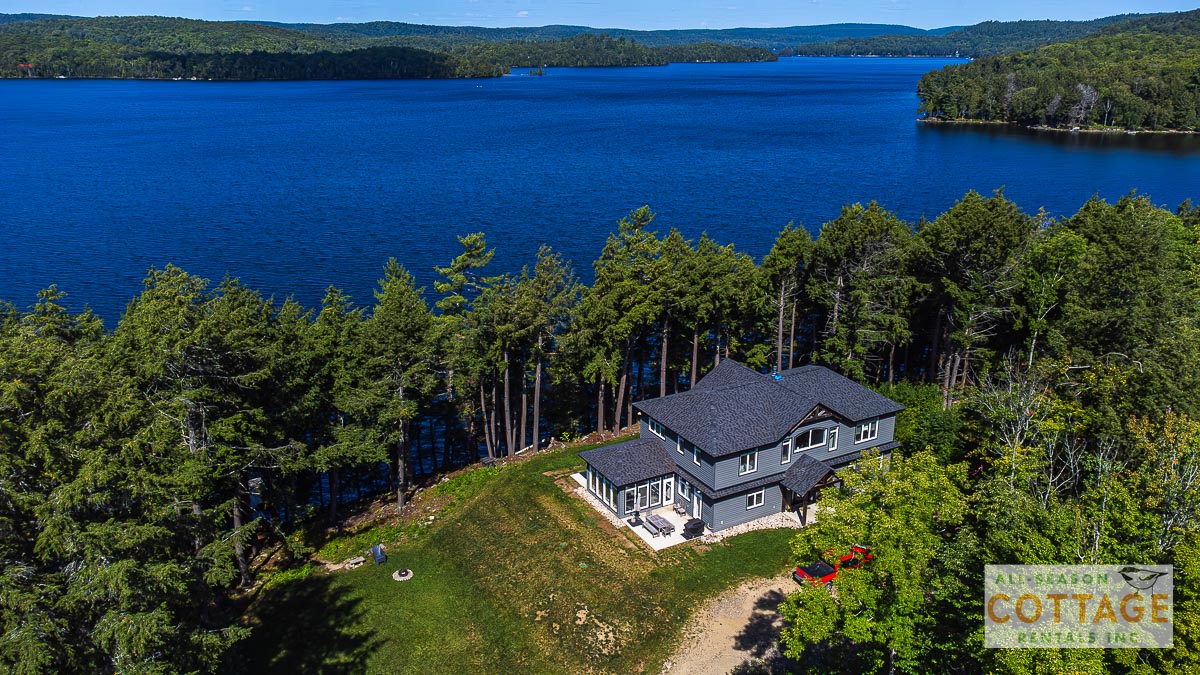 If you are looking for the ideal family cottage, look no further! This gorgeous 4-bedroom, 3-washroom cottage is set up perfectly for multi-generation families with young children. Two bedrooms are equipped with cribs. Other extras such as change table, baby bath, potty, high chair and kitchen stool are provided. There are also baby gates at the top and bottom of stairs. The cottage features an incredibly well stocked, open concept kitchen, dining and living room area. One bedroom is on the main floor and the other three are upstairs. Attached to the master bedroom is a large 5PC washroom with steam shower! Off the end of the cottage is a large sunroom, leading out to patio with BBQ and picnic table. Unlimited internet access is available, as well as satellite TV (with sports package) so you don't miss any games while up at the cottage. The large lawn outside is perfect for yard games. It is important to note that you have to walk down a relatively steep path from cottage to the lake, however, a rope handrail has been installed to ensure this can be done safely. Down at the water you will find a large dock with excellent deep water swimming (the shoreline is rocky, so shallow entry is not possible). The cottage is situated on a large lot offering tons of privacy with Western exposure and 500' of frontage.