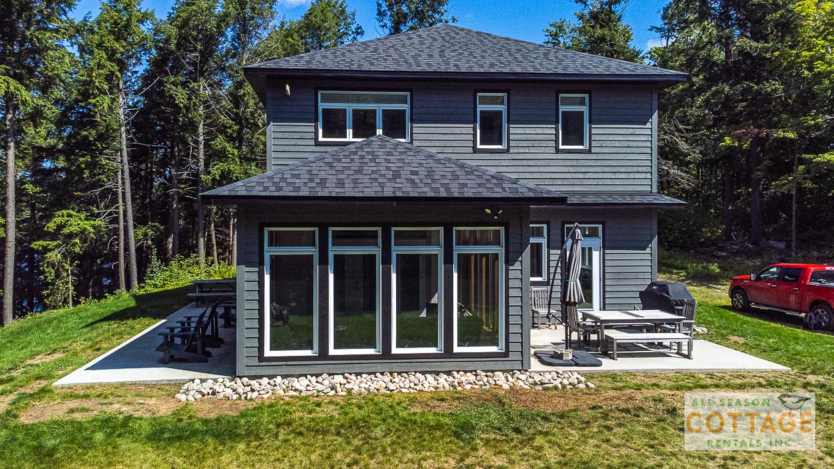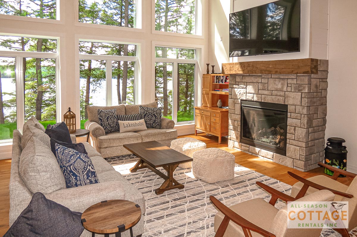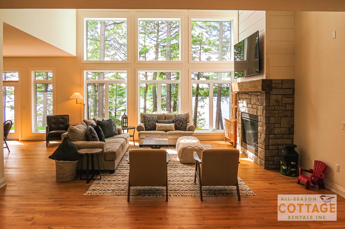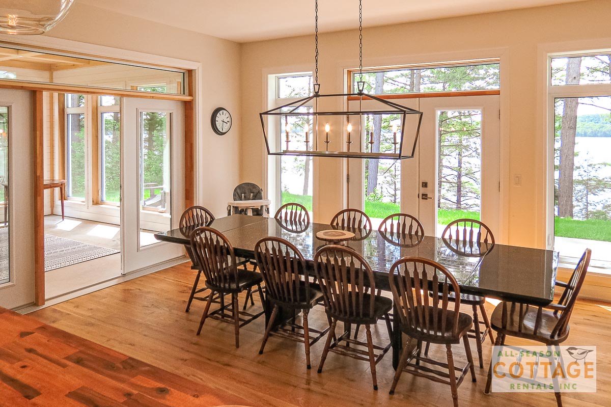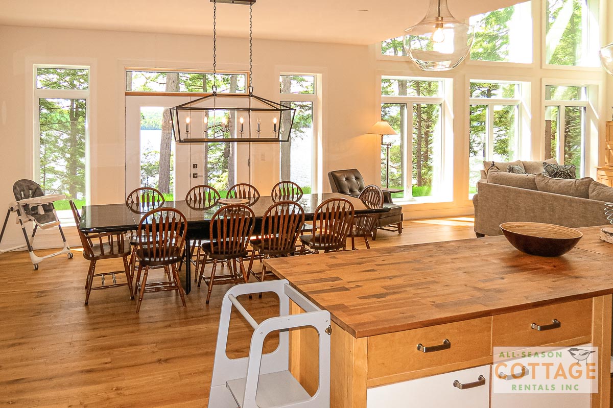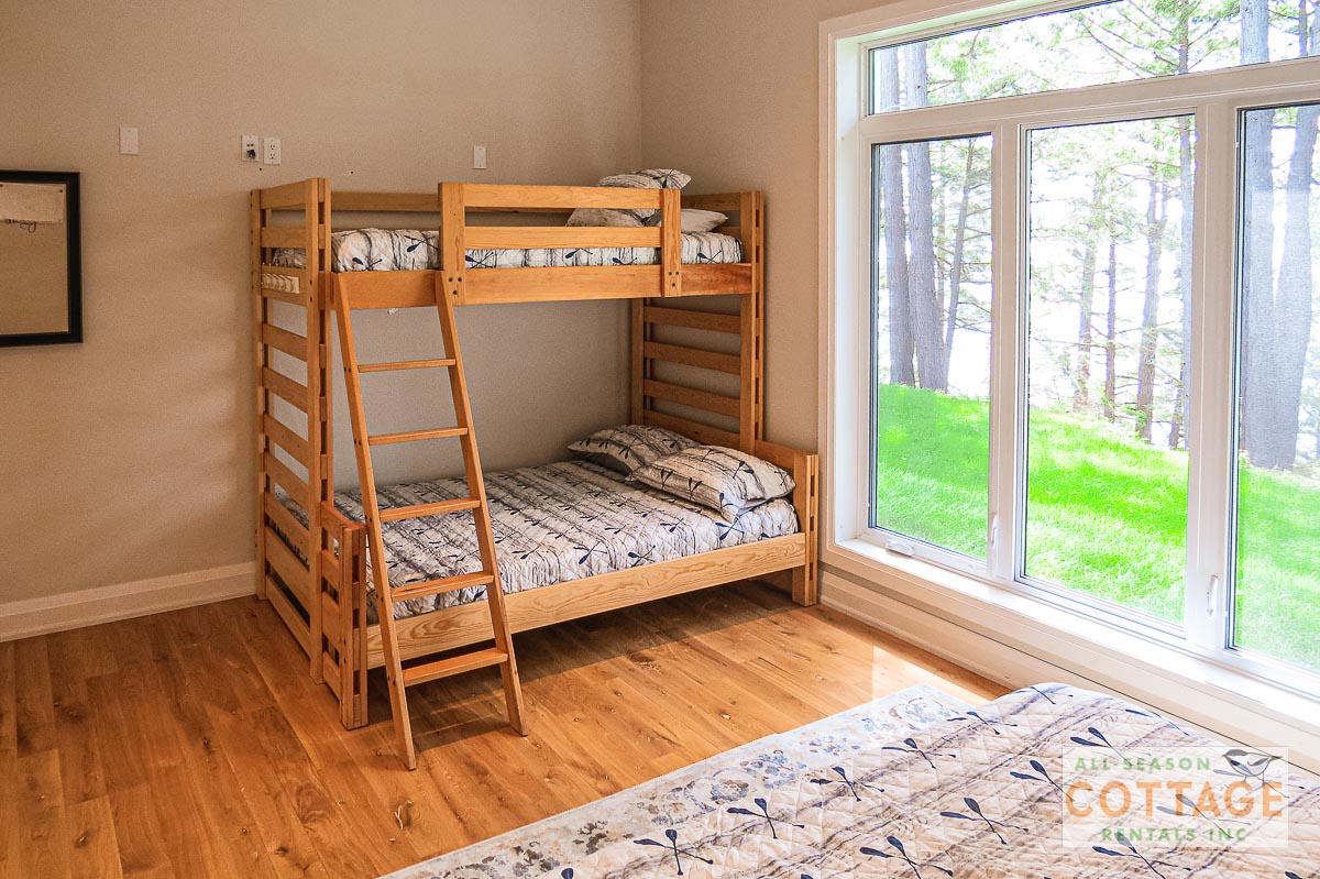 If you are looking for the ideal family cottage, look no further! This gorgeous 4-bedroom, 3-washroom cottage is set up perfectly for multi-generation families with young children. Two bedrooms are equipped with cribs. Other extras such as change table, baby bath, potty, high chair and kitchen stool are provided. There are also baby gates at the top and bottom of stairs. The cottage features an incredibly well stocked, open concept kitchen, dining and living room area. One bedroom is on the main floor and the other three are upstairs. Attached to the master bedroom is a large 5PC washroom with steam shower! Off the end of the cottage is a large sunroom, leading out to patio with BBQ and picnic table. Unlimited internet access is available, as well as satellite TV (with sports package) so you don't miss any games while up at the cottage. The large lawn outside is perfect for yard games. It is important to note that you have to walk down a relatively steep path from cottage to the lake, however, a rope handrail has been installed to ensure this can be done safely. Down at the water you will find a large dock with excellent deep water swimming (the shoreline is rocky, so shallow entry is not possible). The cottage is situated on a large lot offering tons of privacy with Western exposure and 500' of frontage.
