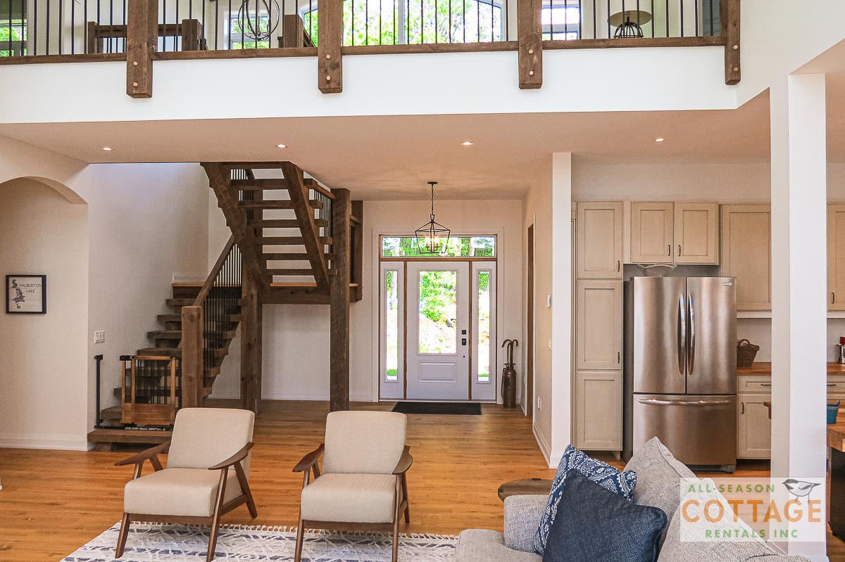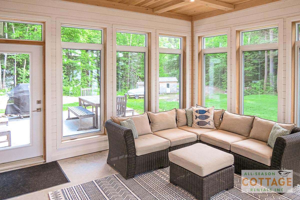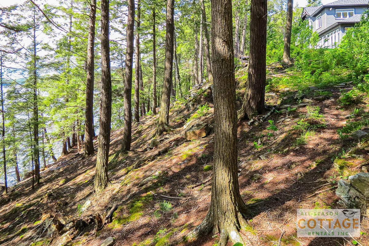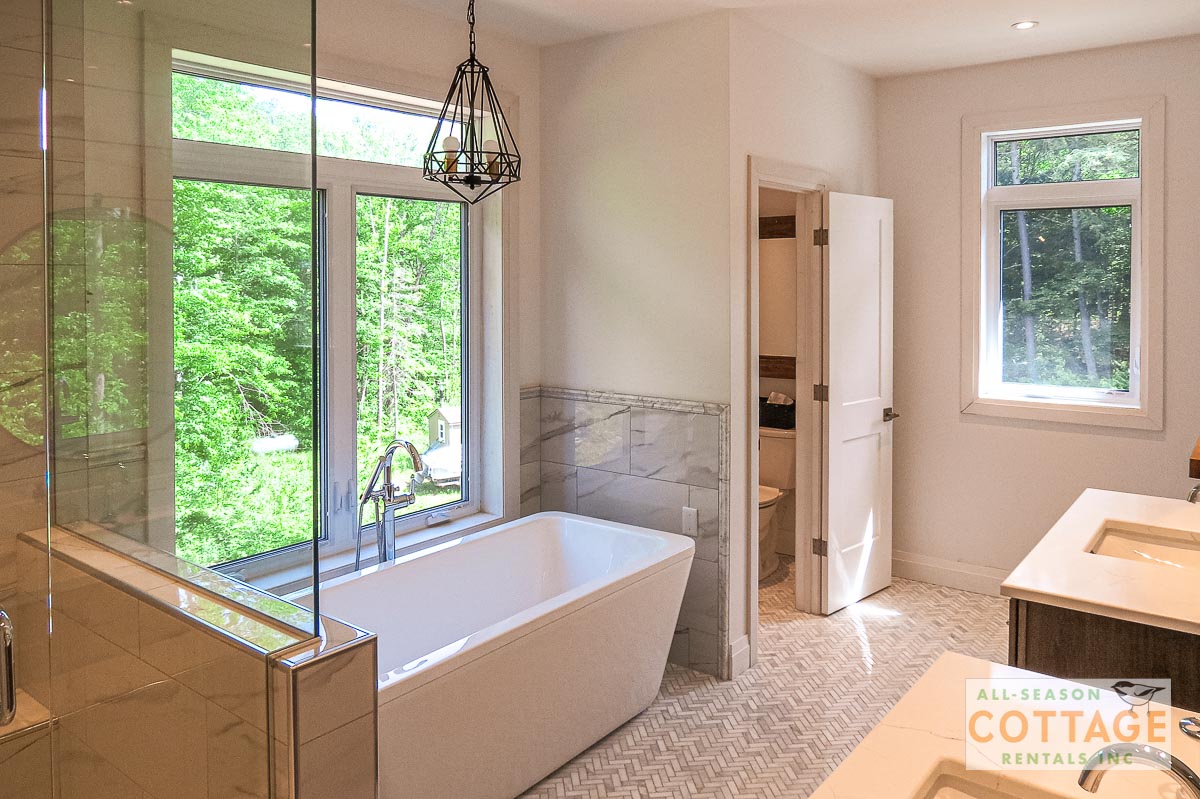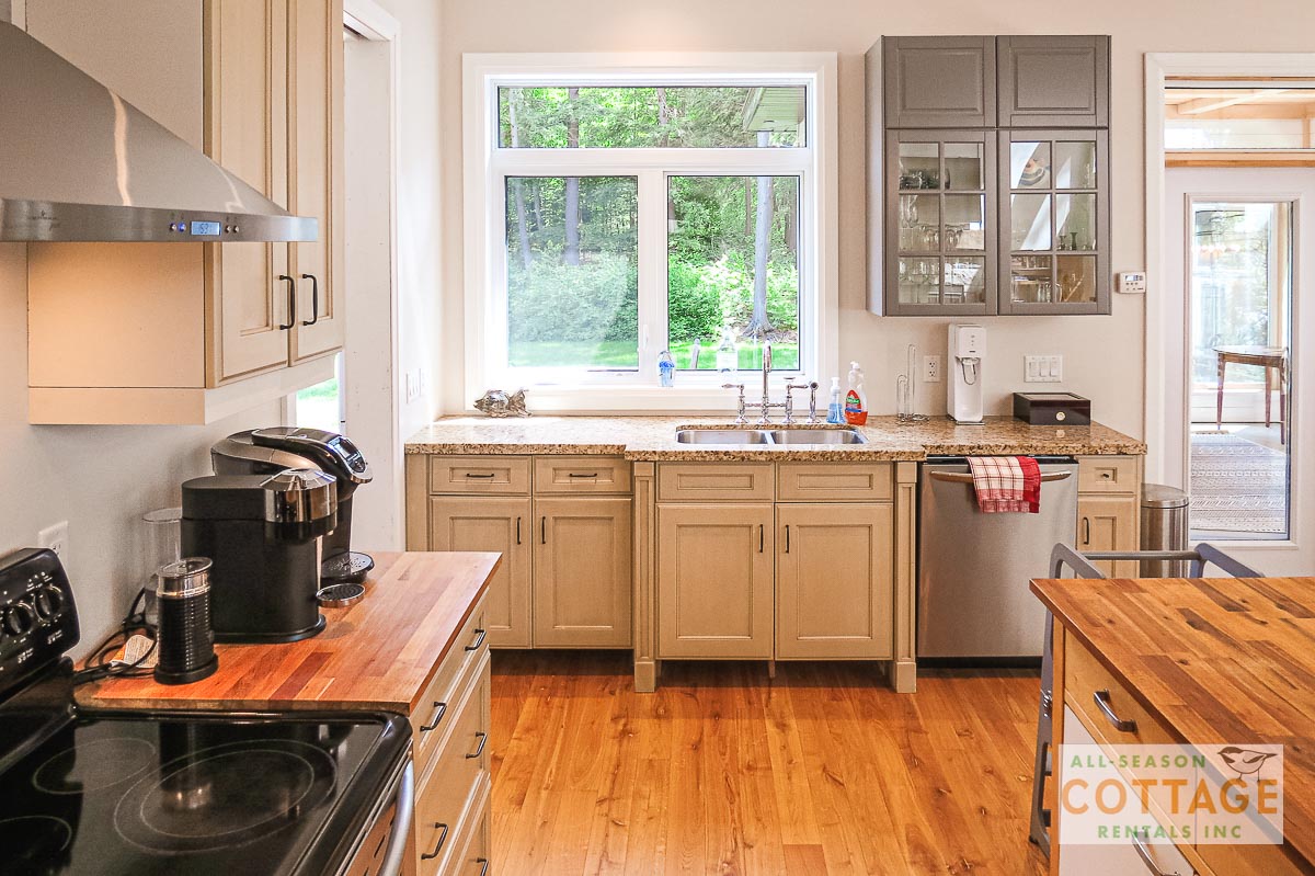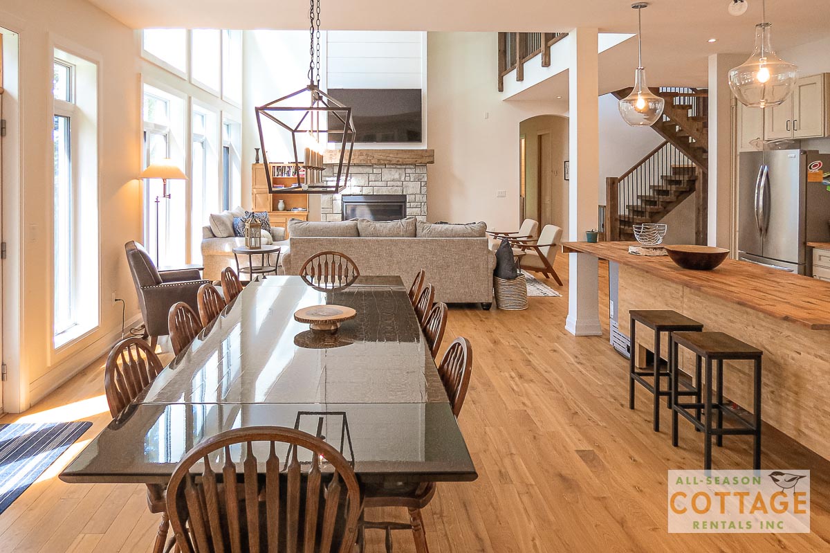 If you are looking for the ideal family cottage, look no further! This gorgeous 4-bedroom, 3-washroom cottage is set up perfectly for multi-generation families with young children. Two bedrooms are equipped with cribs. Other extras such as change table, baby bath, potty, high chair and kitchen stool are provided. There are also baby gates at the top and bottom of stairs. The cottage features an incredibly well stocked, open concept kitchen, dining and living room area. One bedroom is on the main floor and the other three are upstairs. Attached to the master bedroom is a large 5PC washroom with steam shower! Off the end of the cottage is a large sunroom, leading out to patio with BBQ and picnic table. Unlimited internet access is available, as well as satellite TV (with sports package) so you don't miss any games while up at the cottage. The large lawn outside is perfect for yard games. It is important to note that you have to walk down a relatively steep path from cottage to the lake, however, a rope handrail has been installed to ensure this can be done safely. Down at the water you will find a large dock with excellent deep water swimming (the shoreline is rocky, so shallow entry is not possible). The cottage is situated on a large lot offering tons of privacy with Western exposure and 500' of frontage.