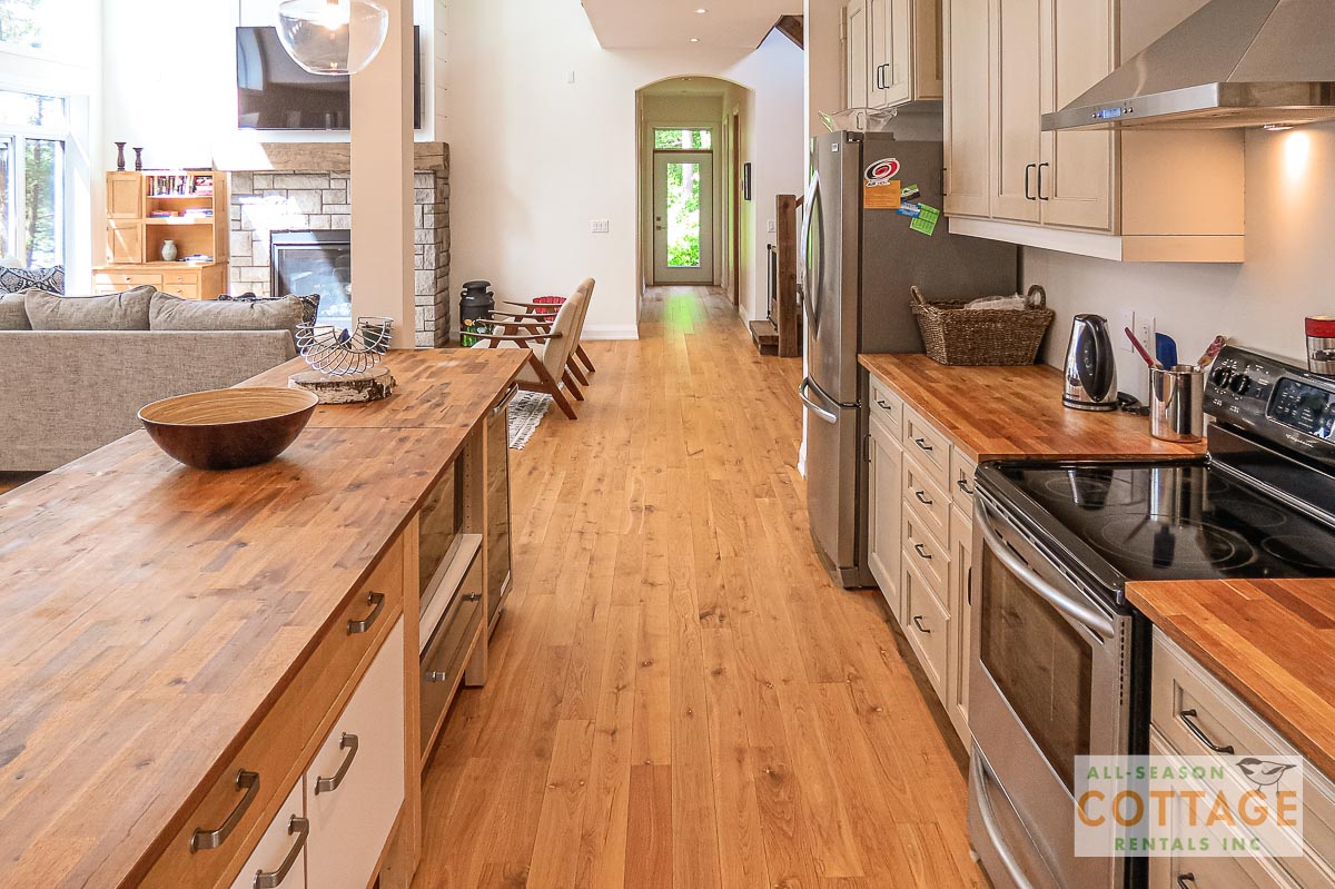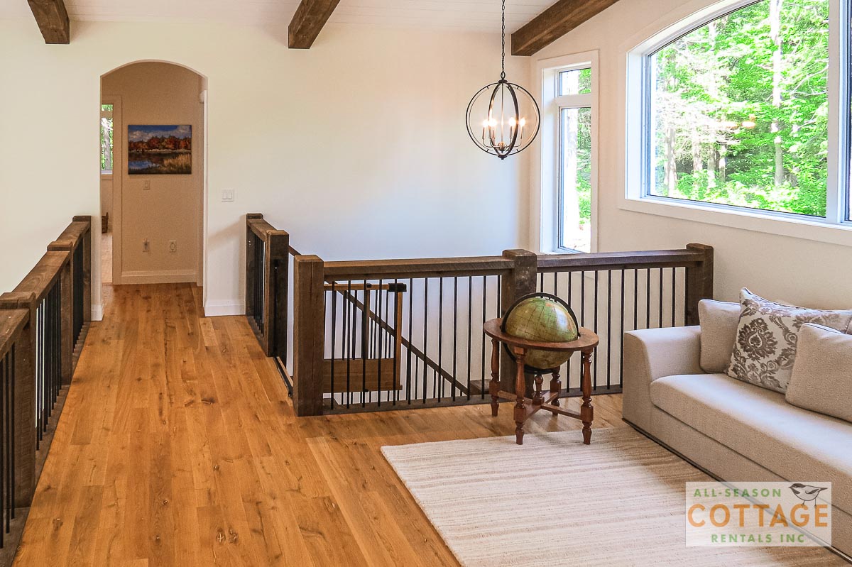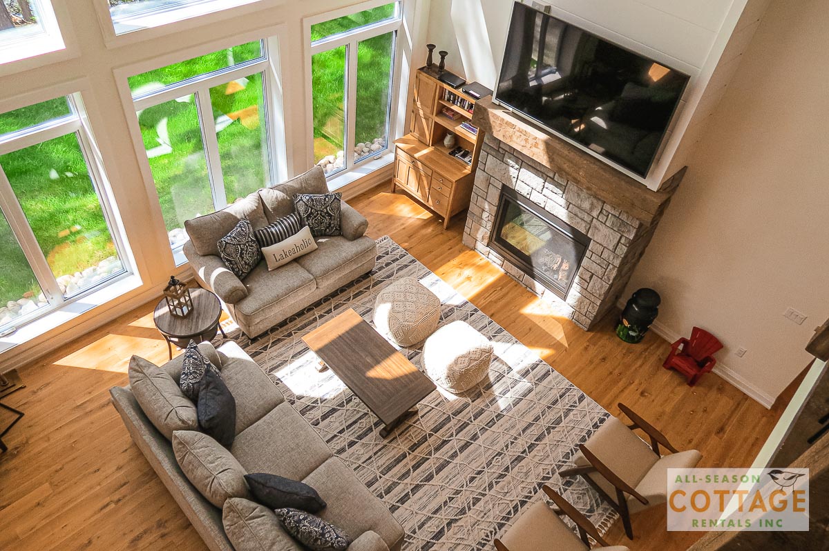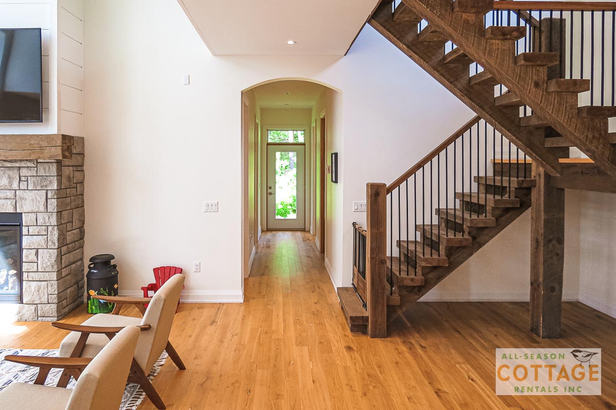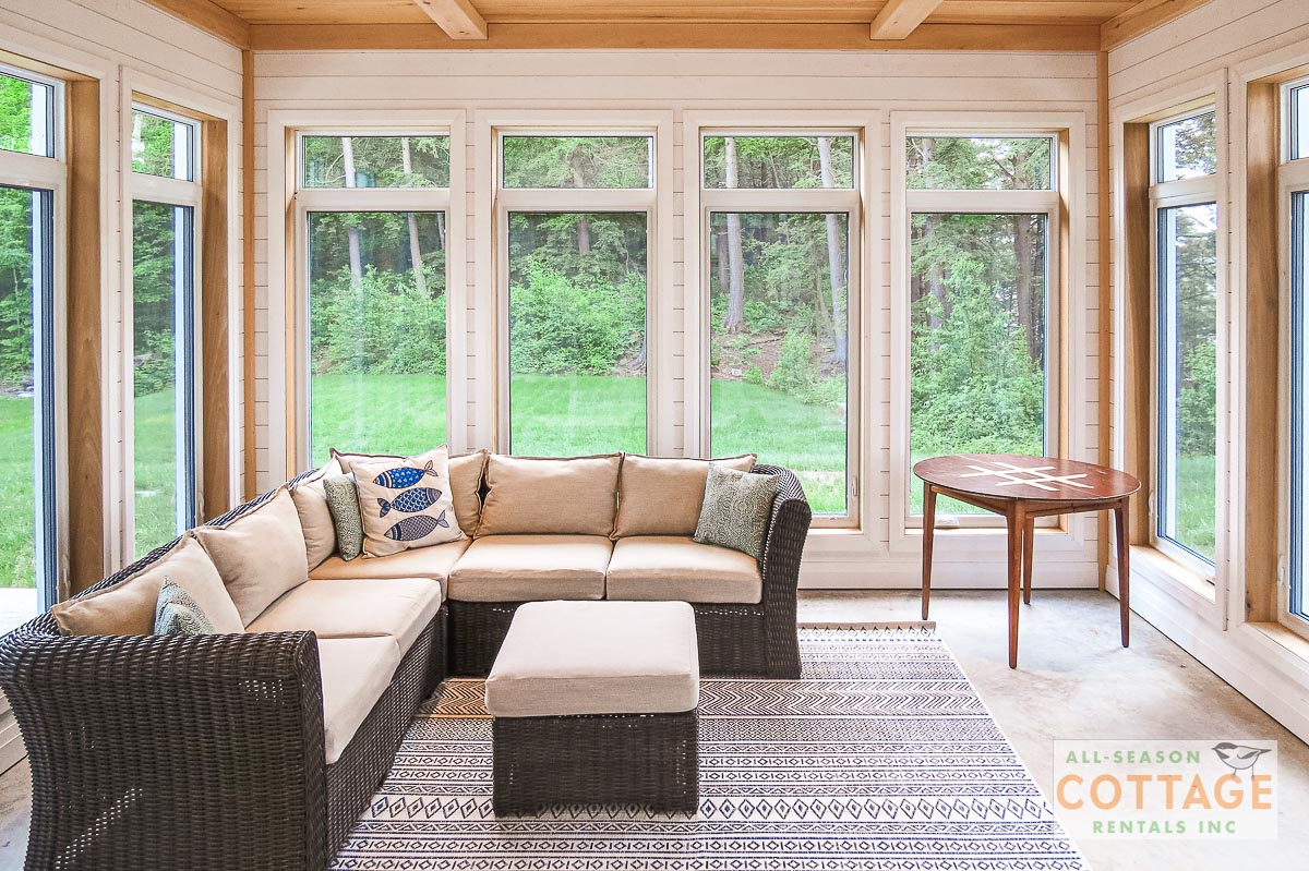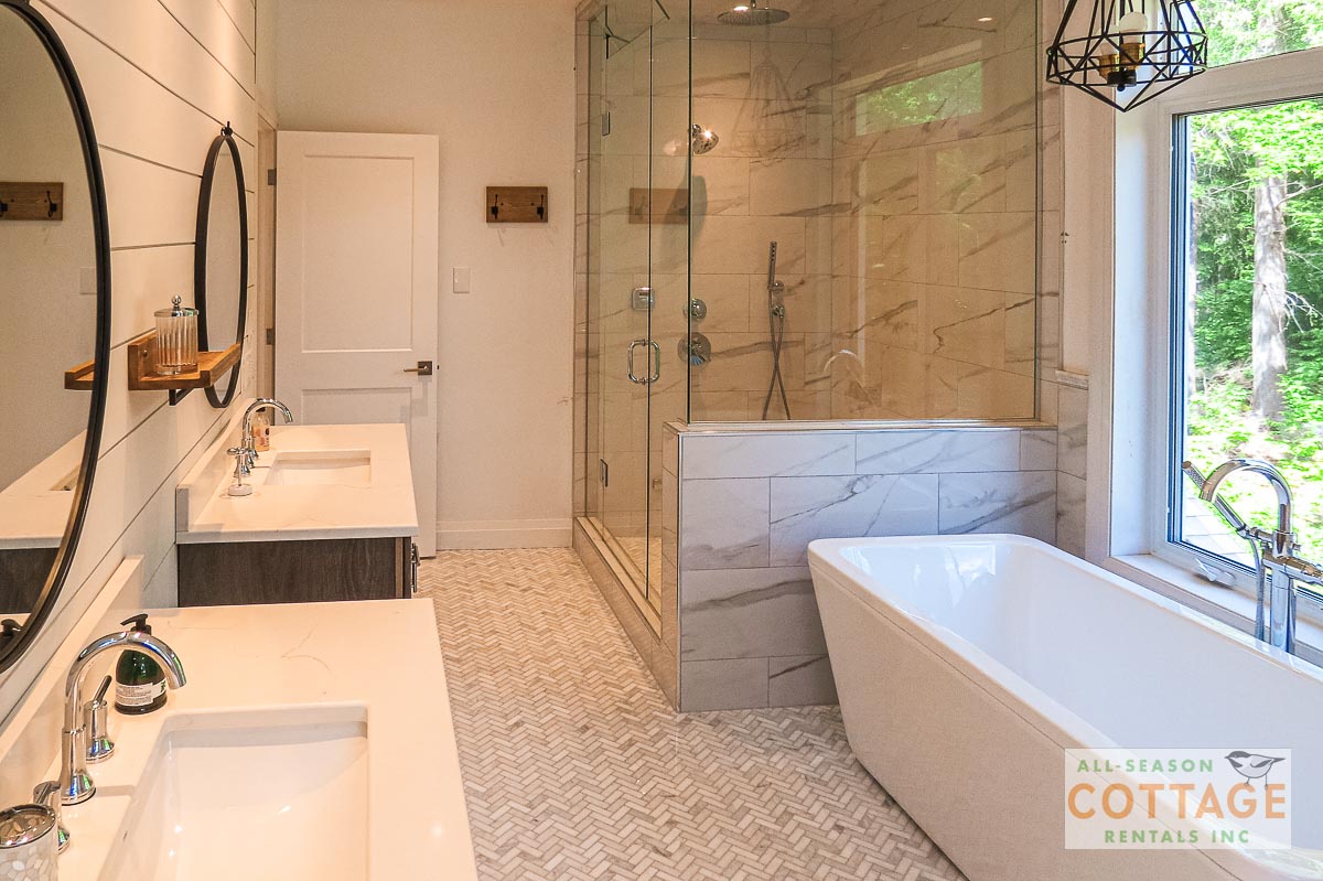 If you are looking for the ideal family cottage, look no further! This gorgeous 4-bedroom, 3-washroom cottage is set up perfectly for multi-generation families with young children. Two bedrooms are equipped with cribs. Other extras such as change table, baby bath, potty, high chair and kitchen stool are provided. There are also baby gates at the top and bottom of stairs. The cottage features an incredibly well stocked, open concept kitchen, dining and living room area. One bedroom is on the main floor and the other three are upstairs. Attached to the master bedroom is a large 5PC washroom with steam shower! Off the end of the cottage is a large sunroom, leading out to patio with BBQ and picnic table. Unlimited internet access is available, as well as satellite TV (with sports package) so you don't miss any games while up at the cottage. The large lawn outside is perfect for yard games. It is important to note that you have to walk down a relatively steep path from cottage to the lake, however, a rope handrail has been installed to ensure this can be done safely. Down at the water you will find a large dock with excellent deep water swimming (the shoreline is rocky, so shallow entry is not possible). The cottage is situated on a large lot offering tons of privacy with Western exposure and 500' of frontage.