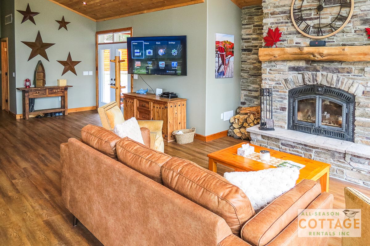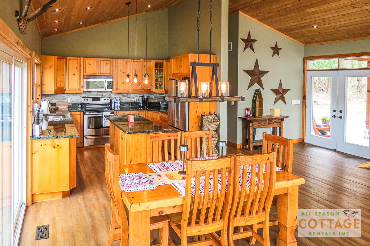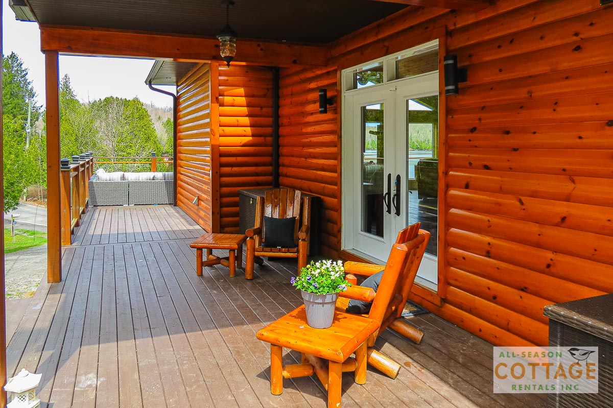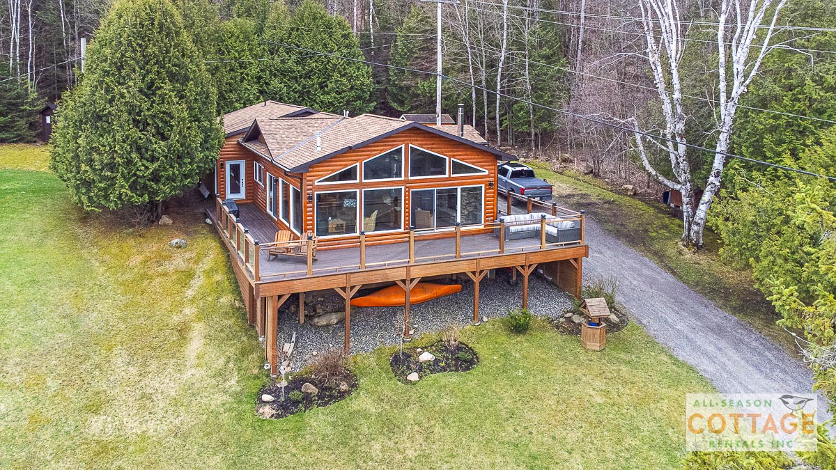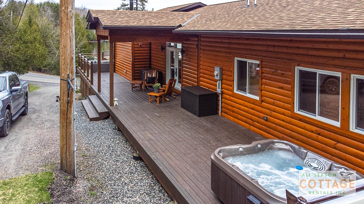 Escape to the serene beauty of Soyers Lake with a stay at Water Dance, your picturesque 3-bedroom, 2-washroom cottage nestled along the shores of Soyers Lake, part of a glorious 5-lake chain in the heart of Haliburton. Renovated with care and styled with elegance, Water Dance offers a modern log cabin retreat amidst nature's splendor. Step inside to discover an open and spacious floor plan, perfect for family gatherings and moments of togetherness. With its bungalow layout, accessibility is effortless, catering to all guests, including those with mobility needs. Outside, a large wrap-around deck beckons, adorned with comfortable outdoor seating including a plush sofa and two classic Muskoka chairs, inviting you to unwind and soak in breathtaking views of Soyers Lake. As evening descends, slip into the outdoor hot tub and let the warmth envelop you as you gaze at the star-studded sky. For the avid golfer, indulge in a round or two at the nearby Blairhampton Golf Course or Pinestone Golf Course, both just a short drive away. And when hunger strikes, venture into the charming towns of Haliburton or Minden, both within a 15 minute drive from the cottage, offering an array of shops, restaurants, and local attractions to explore. But the true highlight of Water Dance lies at the water's edge. Dip your toes into the crystal-clear, weed-free waters of Soyers Lake, perfect for swimming and water activities. For a touch of luxury, retreat to the lakeside boat house, where a bar and cozy love seat await, providing the ultimate spot to unwind with a refreshing drink in hand as you watch the sunset paint the sky in hues of orange and gold. Whether you're seeking adventure or relaxation, Water Dance promises an unforgettable escape, where every moment is infused with the magic of cottage life on Soyers Lake. Book your stay today and embark on a journey of serenity and bliss.