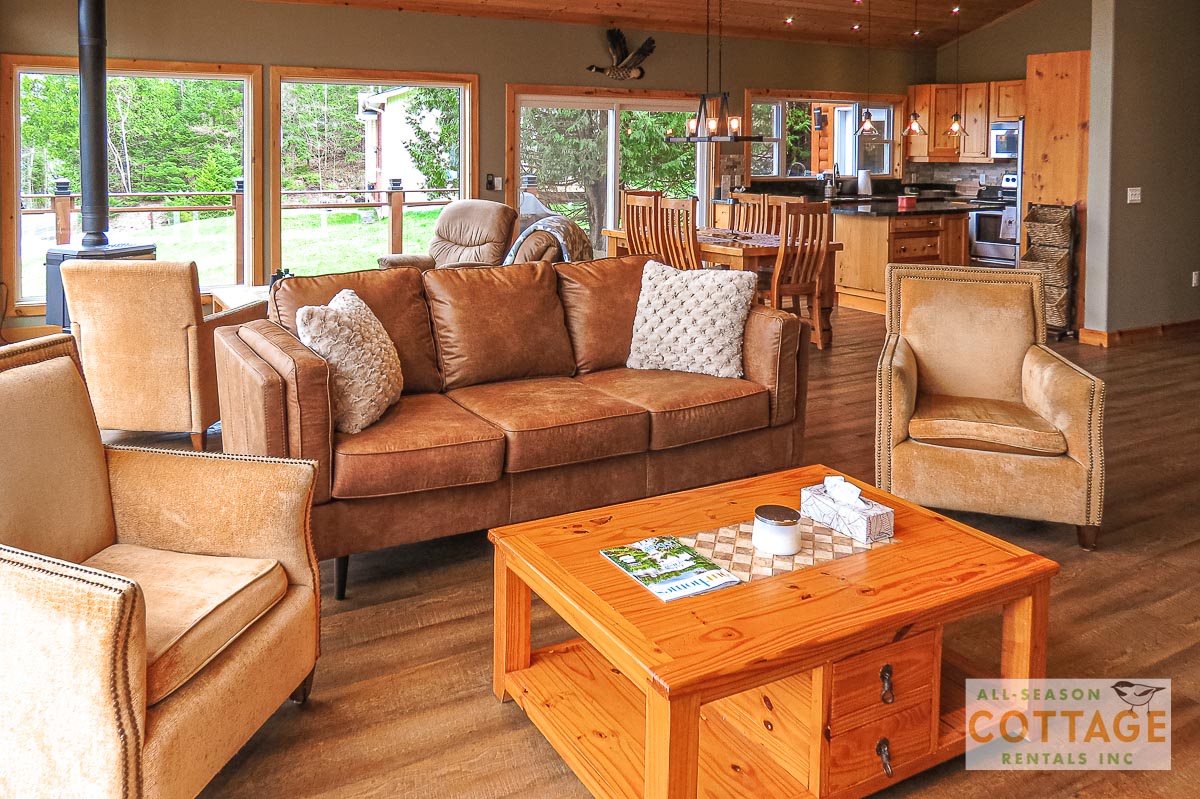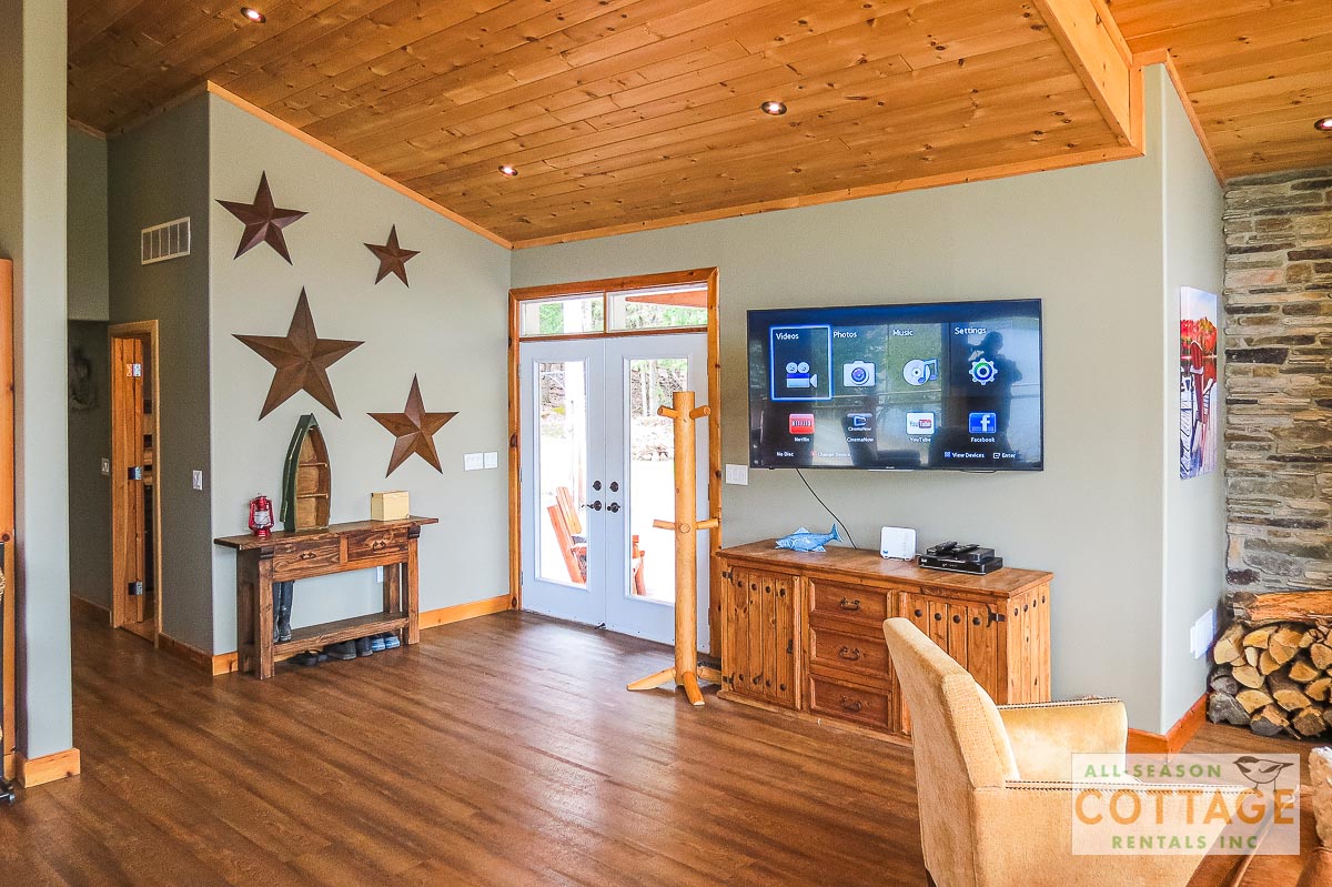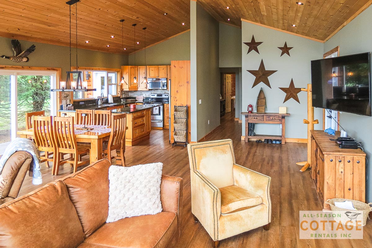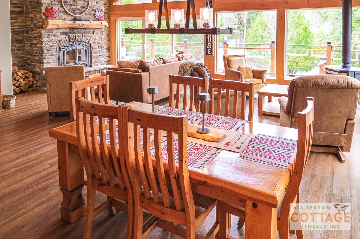 Escape to the serene beauty of Soyers Lake with a stay at Water Dance, your picturesque 3-bedroom, 2-washroom cottage nestled along the shores of Soyers Lake, part of a glorious 5-lake chain in the heart of Haliburton. Renovated with care and styled with elegance, Water Dance offers a modern log cabin retreat amidst nature's splendor. Step inside to discover an open and spacious floor plan, perfect for family gatherings and moments of togetherness. With its bungalow layout, accessibility is effortless, catering to all guests, including those with mobility needs. Outside, a large wrap-around deck beckons, adorned with comfortable outdoor seating including a plush sofa and two classic Muskoka chairs, inviting you to unwind and soak in breathtaking views of Soyers Lake. As evening descends, slip into the outdoor hot tub and let the warmth envelop you as you gaze at the star-studded sky. For the avid golfer, indulge in a round or two at the nearby Blairhampton Golf Course or Pinestone Golf Course, both just a short drive away. And when hunger strikes, venture into the charming towns of Haliburton or Minden, both within a 15 minute drive from the cottage, offering an array of shops, restaurants, and local attractions to explore. But the true highlight of Water Dance lies at the water's edge. Dip your toes into the crystal-clear, weed-free waters of Soyers Lake, perfect for swimming and water activities. For a touch of luxury, retreat to the lakeside boat house, where a bar and cozy love seat await, providing the ultimate spot to unwind with a refreshing drink in hand as you watch the sunset paint the sky in hues of orange and gold. Whether you're seeking adventure or relaxation, Water Dance promises an unforgettable escape, where every moment is infused with the magic of cottage life on Soyers Lake. Book your stay today and embark on a journey of serenity and bliss.